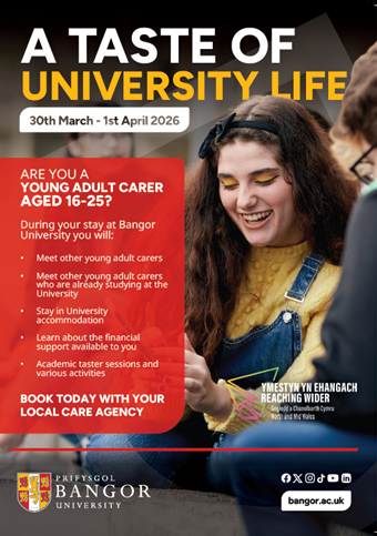 During their time in Bangor, they will be staying in university halls of residence, taking part in taster lectures, and receiving information and guidance around student finance and university life. It is a brilliant opportunity for young carers to explore what going away to university might feel like and to think about whether a university further from home could be right for them.